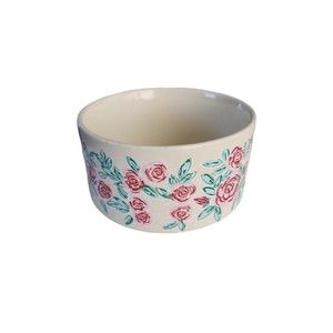 Set of 2 vintage soup mugs. The butterfly/floral mug has no markings. One side print. Color is off white. The all floral mug is K.I.C and floral print goes around the mug. Has 2 stains inside which is pictured. Color is more cream.