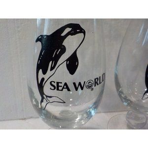 Set of 2 Vintage Souvenir Clear Hurricane Glasses Sea World Orca Whale Shamu