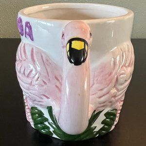 Set of 2 Vintage Souvenir Mugs w/ Pink Flamingo Neck and Lizard Tail Handles
