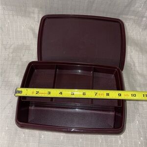 Pair of vintage Tuppercraft containers. Includes one brown and one purple. Ideal for organizing your craft supplies.