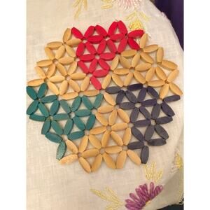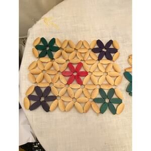 Set of Two (2), Vintage Wooden Beaded Trivets / Hot Pads, One round (ish), one rectangular. Very pretty design, quite Boho and mid-century. Pre-owned in very good condition.
