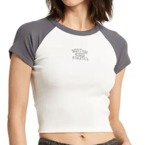 Vintage-inspired graphic T-shirts in a cropped length with sporty raglan sleeves.
