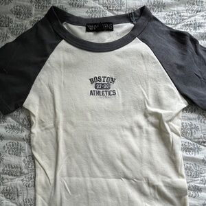 Boston Embroidered Graphic Crop Tee in Cream/ Gray