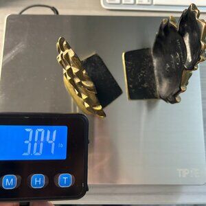 This matching set of vintage solid brass pineapple bookends by Virginia Metalcrafters captures the warmth of classic American hospitality. Symbolizing welcome and tradition, the detailed Newport pineapple motif offers both decorative and functional charm. Heavy and durable, these Mid-Century Colonial Revival pieces are perfect for bookshelves, entryway decor, or gifting. Great vintage condition with natural patina and minor wear consistent with age.