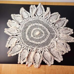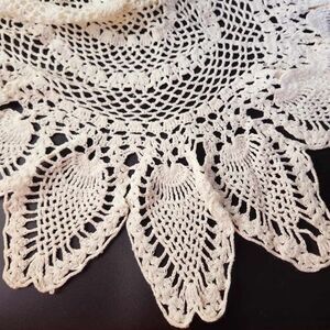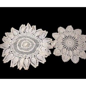 Set of 2 Vtg Hand Crocheted Doilies Linens Round Pineapple Cream Cottage Core