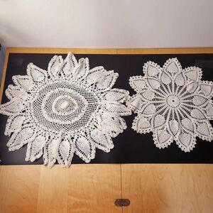 Set of 2 Vintage Hand Crocheted Cotton Pineapple Doilies Linens