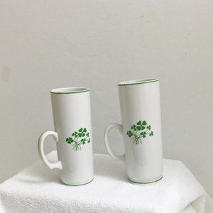 Set of 2 White Porcelain IRISH COFFEE Mugs Cups Shamrocks Green Line Trim