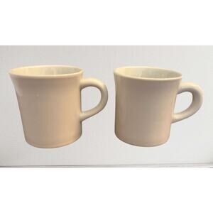 Fabulous essential white set of two (2) 8 oz coffee/tea mugs measuring 3.5" H x 3.5" W. Oven, broiler, microwave & dishwasher safe. Great condition!
