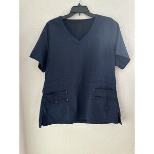 Set of (2) Womens Scrub Tops Dagacci & Cherokee Size L Black & Blue Pockets