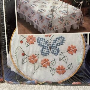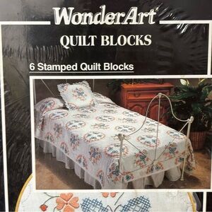 Set of (2) WonderArt STAMPED CROSS STITCH QUILT BLOCKS *BUTTERFLY CIRCLE* on new condition