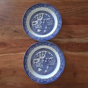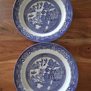 Set of 2 Wood & Sons England Blue Willow Dinner Plate 10" - EXCELLENT