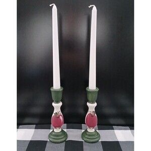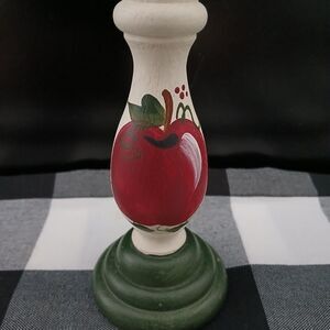 Set of 2 Wooden Country Farmhouse Rustic Hand Painted Apples Candle Holders