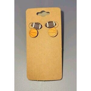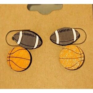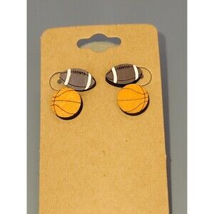 Set of 2 Wooden Spots Mom Stud Earrings Hand Painted Basketball Football Pierced