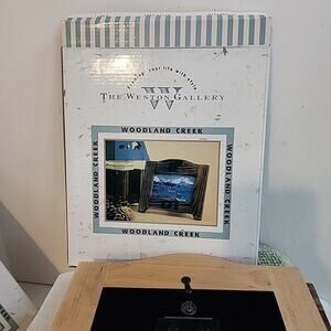 The Set of 2 Woodland Creek 6x4 Rustic Moose Photo Frames by Weston Gallery Cabin is a charming addition to any nature-themed home décor. Made of wood with a rustic pattern and clear glass, these rectangular frames are perfect for showcasing 4 x 6 inch photos in a landscape orientation. Whether displayed on a tabletop or wall, these frames capture the essence of the outdoors with their lodge style design. The set includes two frames, each with a capacity for one photo, making them a practical and aesthetically pleasing choice for any nature lover's home. One frame is dark wood and the other is light. Comes with original box.