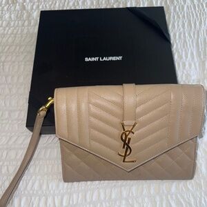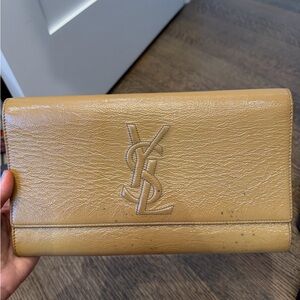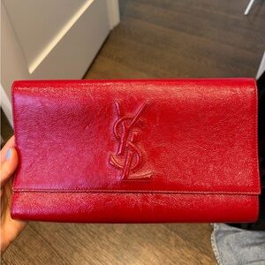 Set of 2 RARE 100% authentic YSL Yves Saint Laurent leather Belle De Jour clutches in red and nude. Elegant and timeless with embossed YSL logo! Perfect for nights out, weddings, parties, and formal events. The red one is in perfect condition, the nude one has miscellaneous marks and spots on it. Please view all photos carefully, condition is as depicted. Open to reasonable offers and happy to send more photos and answer questions!