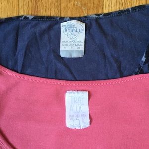 Very feminine and flattering t shirts with gathering on the sleeve and scoop necklines by Zara Trafaluc label. Some peeling from washing, but still plenty of life left in them. Blend of cotton and elastane.