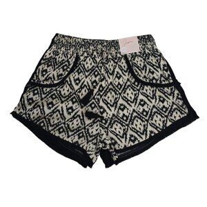 These charming and cozy sleepwear shorts exemplify a delightful blend of comfort and style. The intricate ikat print combined with solid black design adds a chic and modern flair. Crafted from soft rayon, these shorts feature practical pockets and a stretchy waistband, making them an ideal choice for relaxed lounging or peaceful slumber.
