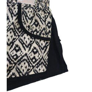 Set of 2 black japa and ikat print rayon shorts with elastic waist for women M