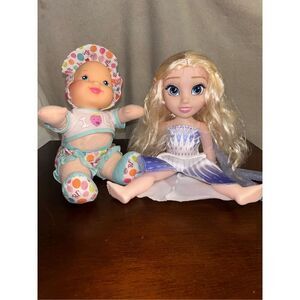 Elsa is 12 inches. Other doll is smaller. Both in excellent condition