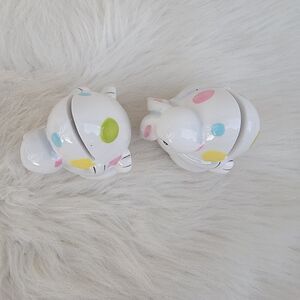 Set of 2 handpainted ceramic Easter bunny place card holders