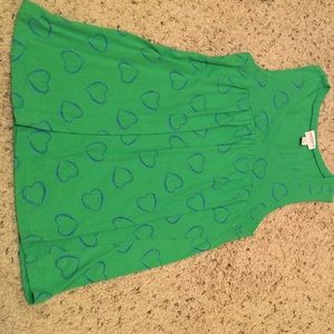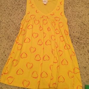 Two beautiful sleeveless tops! One yellow with pink and orange hearts, one kelly green with dark and light blue hearts