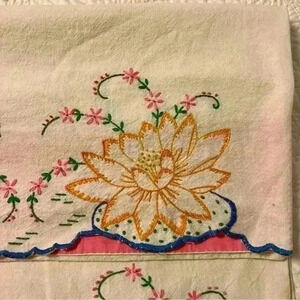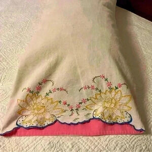 Set of 2 vintage handmade embroidered flour sack pillowcases lotus flower