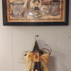 Blue Wooden 3 dimensional hanging or stand star with bird house 13 in high and 8 in wide decor AND rectangular print picture 22 in wide and 12 in high with wooden frame and glass. Like new from a smoke and pet free home.
