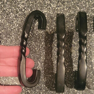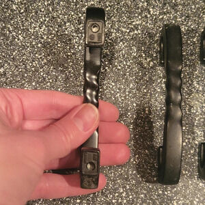 3 inch between 2 screws. For any cabinet. Heavy weight. Thick metal. Black. Can be spray painted any color. Curved ends and twist middle detail. Selling multiple sets of 8. Very heavy so no discounts on bundles as shipping fees will be high. Will Include screws if needed just comment that you need them. Total of 26 pulls available. Also listed in groups of 8