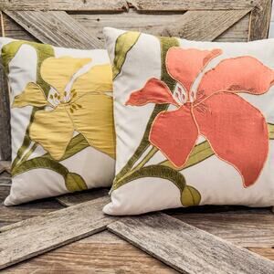 Set of 2-Crate & Barrel-Aria Collection Floral Pillows-Covers & Inserts-12”x12”