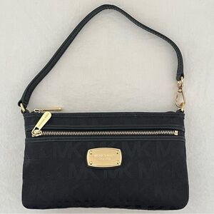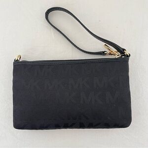 Set of 2 MK Michael Kors Jet Set Signature Logo Wristlet Mini Bag Black Taupe