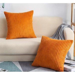 Set of 2Soft Plush Velvet Big StripedCorduroy Solid Decorative Throw PillowCover