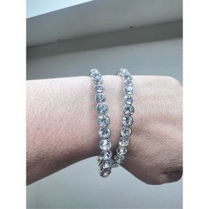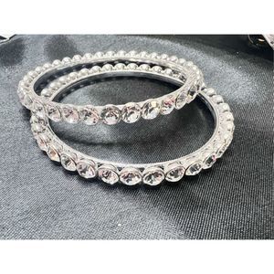Set of 2 crystal rhinestone silver tone bangle bracelets
