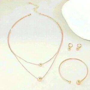 Set of 3 14k Gold over Sterling Silver Bead Design Necklace + Bracelet + Earrings