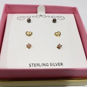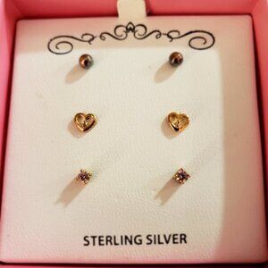 Set of 3 18k Gold-Plated over Sterling Silver Pink Cubic Zirconia Stud Earrings