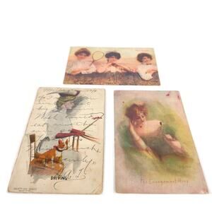 Set of 3 1907-09 Gibson Girls Lithograph Postcards Tennis Queens Society Driving