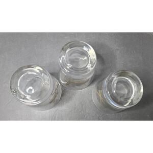 Set of 3 Vintage Houston Astros Astrodome Logo Souvenir Lowball Glasses. Opened in 1965, the Astrodome was nicknamed the "Eighth Wonder of the World" dues to its groundbreaking design and engineering. The glasses depict a gold colored outline of the Astrodome's iconic dome structure and atomic orbital lines, very MCM, with "Astrodome" written below. The Astrodome has been closed since 2009 to the public. These are in excellent collectible condition. No color loss, scratches, shelf wear or cloudiness. Each glass measures 3 1/4" T x 3 1/4" W top x 2 1/2" base. Total weight 1 lb. 9 oz. (bx12x5x5)