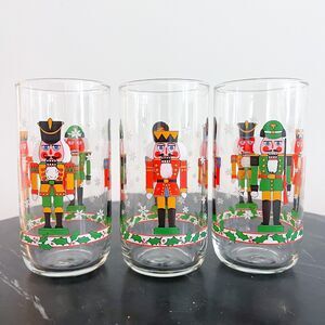 Set of 3 1980s Libby Nutcracker Drinking Glasses Holiday Christmas Vintage