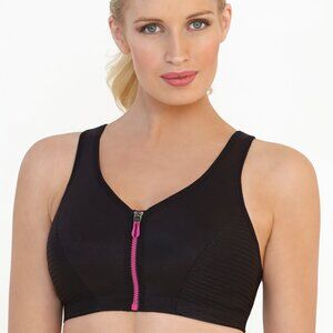 Set of 3! 36B Glamorise SPORT Bra (HIGH-IMPACT) Black (RACERBACK) T-Back Zip NEW