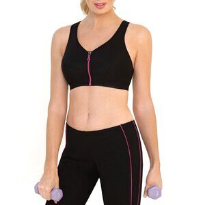 Set of 3! 40B Glamorise SPORT Bra (HIGH-IMPACT) Black (RACERBACK) T-Back Zip NEW