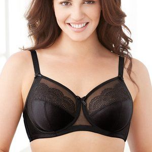 Set of 3! 42D Glamorise ELEGANCE Bra (UNDERWIRED) Lace STRETCH-STRAPS BLACK NEW
