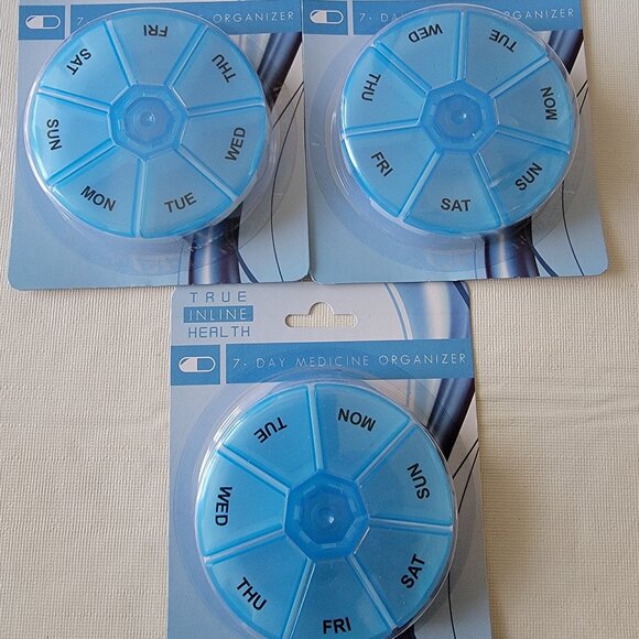 Set of 3 ~ 7-day Portable Pill Box Medicine Planner Small Case Blue & White