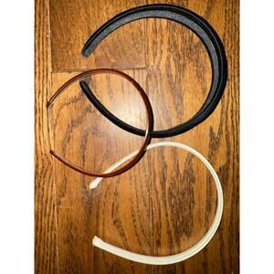 Set of 3 80's Vintage headbands Black, Cream. Brown Plastic and Fabric