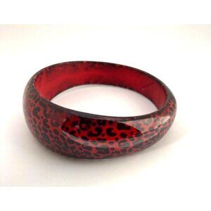 These 3 animal print chunky acrylic bracelets will bring some serious sparkle to your wardrobe. The purple and yellow bracelets have glitter embedded in them. They are in good pre-owned condition. The red one has some slight fading in some areas (see pictures). They each measure approximately 3" in diameter.