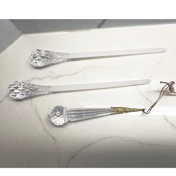 Set of 2 teardrop-shaped ornaments Acrylic. They have a vintage style and are 8 inches in length.