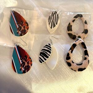 Set of 3 Animal Print laser cut out earrings - leopard, layered leaves (zebra), multi color leopard print earrings