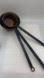 Set of 3 Antique Brass Copper Fireplace Pots with Long Iron Handle Dipper Scoop