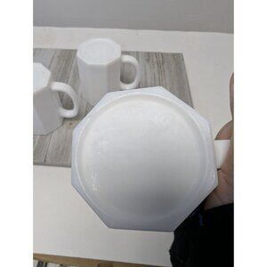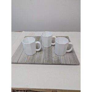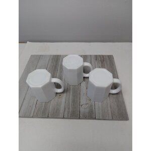 Set of 3 Arcoroc France Octime White Glass Octagon Mugs Coffee