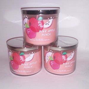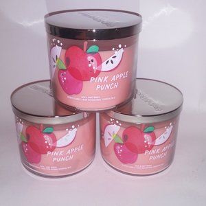 Set of 3 Bath & Body Works Scented Candle 3 Wick Pink Apple Punch 14.5oz Each Br