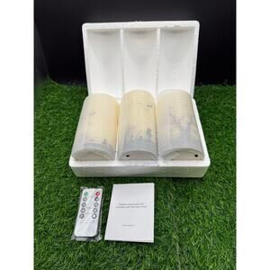 Create a spooky and festive atmosphere with this set of three battery-operated LED Halloween decorative candles. Each candle is flameless and safe for indoor use, perfect for adding a warm, eerie glow to your Halloween décor. The set includes a convenient remote control with timer functions, allowing you to easily turn the candles on or off and set them to light automatically. Ideal for mantels, tabletops, or as part of a Halloween centerpiece, these LED candles combine safety, convenience, and seasonal charm. Brand new in box. Great value!!