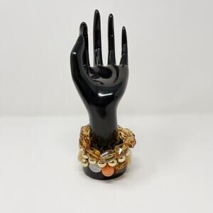 Set of 3 Beaded Fashion Statement Bracelets Gold Peach Orange Copper